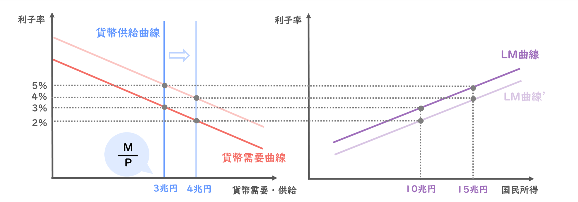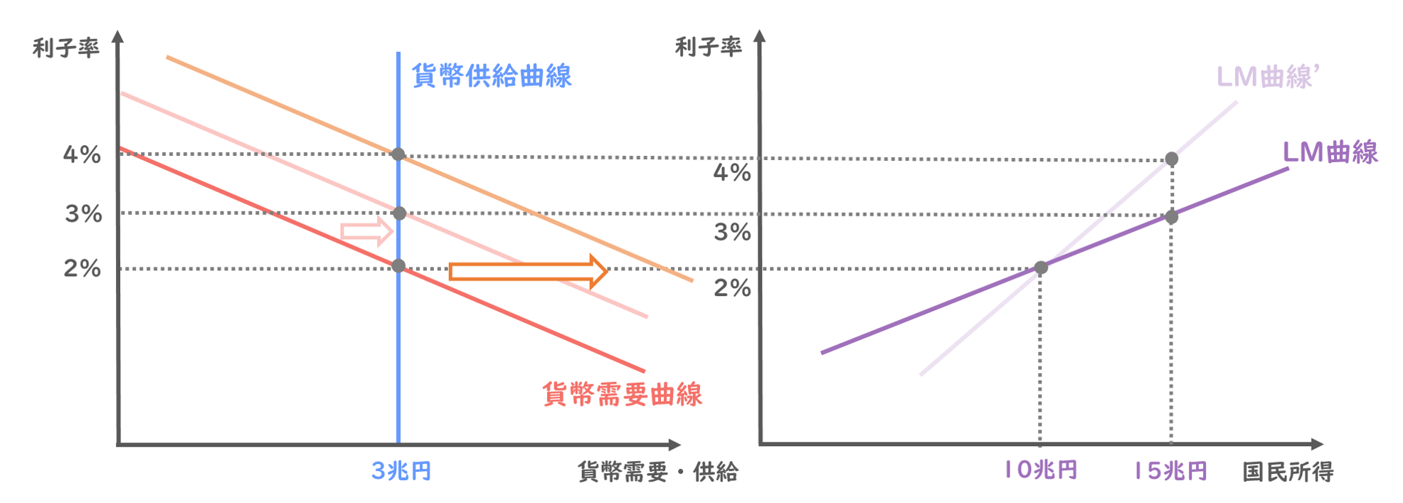 前のLM曲線と比較すると、傾きが緩やかになったことが読み取れます。