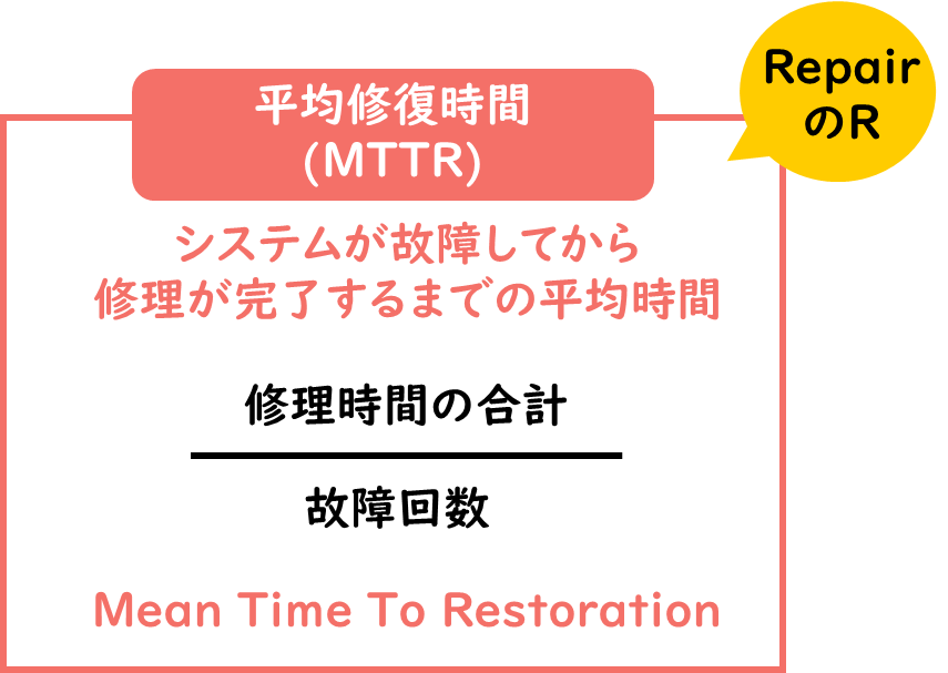 「平均修復時間」という名称からも、こちらは違和感なく覚えられるかと思います。