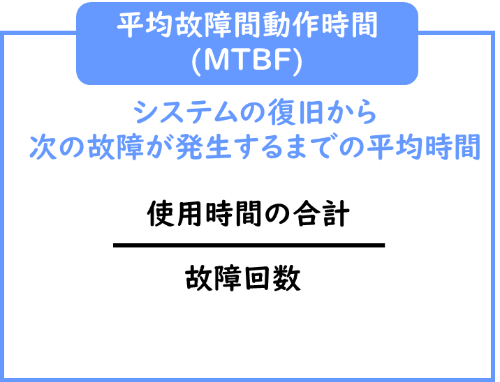 平均故障間動作時間は、システムの復旧から次の故障が発生するまでの平均時間を表します。